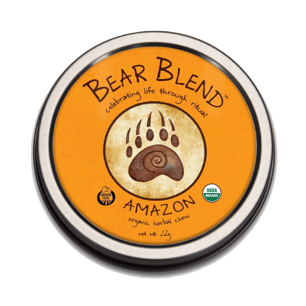 Bear Blend Herbal Chew is a more condensed form of our loose herbal blends. It is not a tobacco chew alternative. It like an herbal candy for people who like to chew, and has a slightly sweet flavor. The herbs do not need to be spit out — they are edible and safe for consumption. Please use caution as you might feel the effects of the herbs immediately, especially with stronger blends.